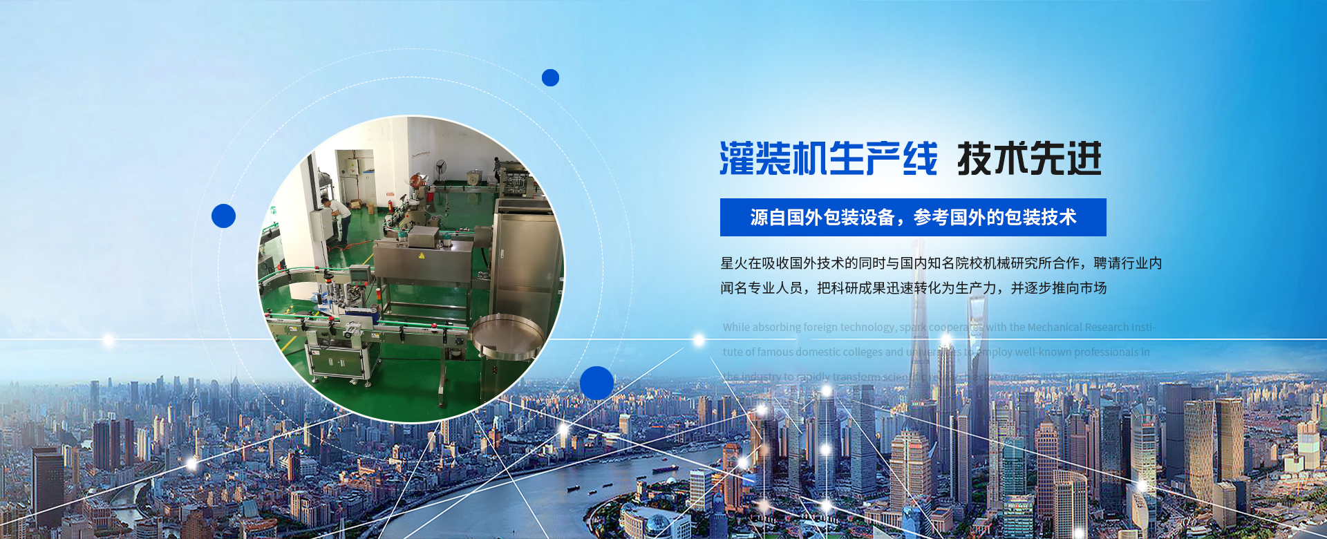 源自國外包裝設(shè)備,參考國外的包裝技術(shù),與國內(nèi)知名院校機械研究所合作。灌裝機等設(shè)備已擁有十多項產(chǎn)品知識產(chǎn)權(quán)和專利技術(shù)